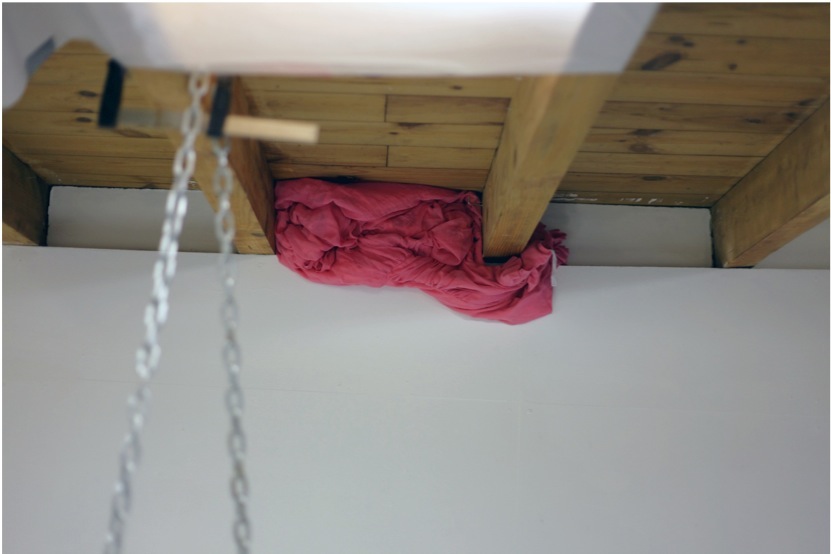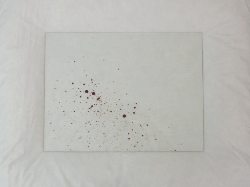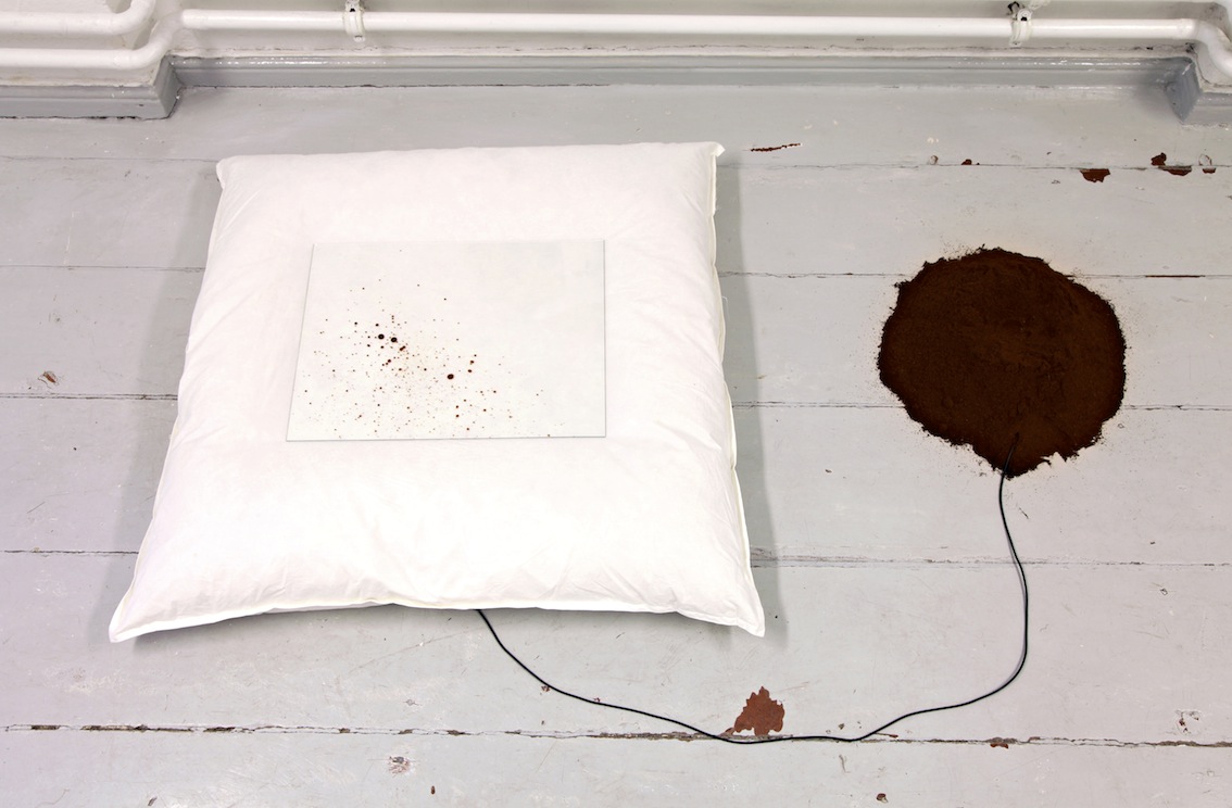 z - Daniel Löwenbrück - 2012, Lullaby, pillow, glass, blood, coffee, sound (detail).