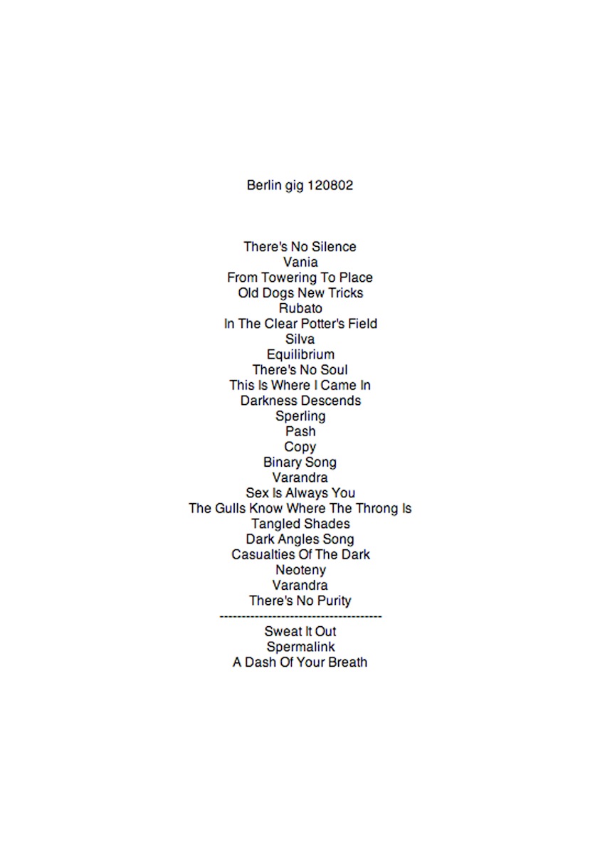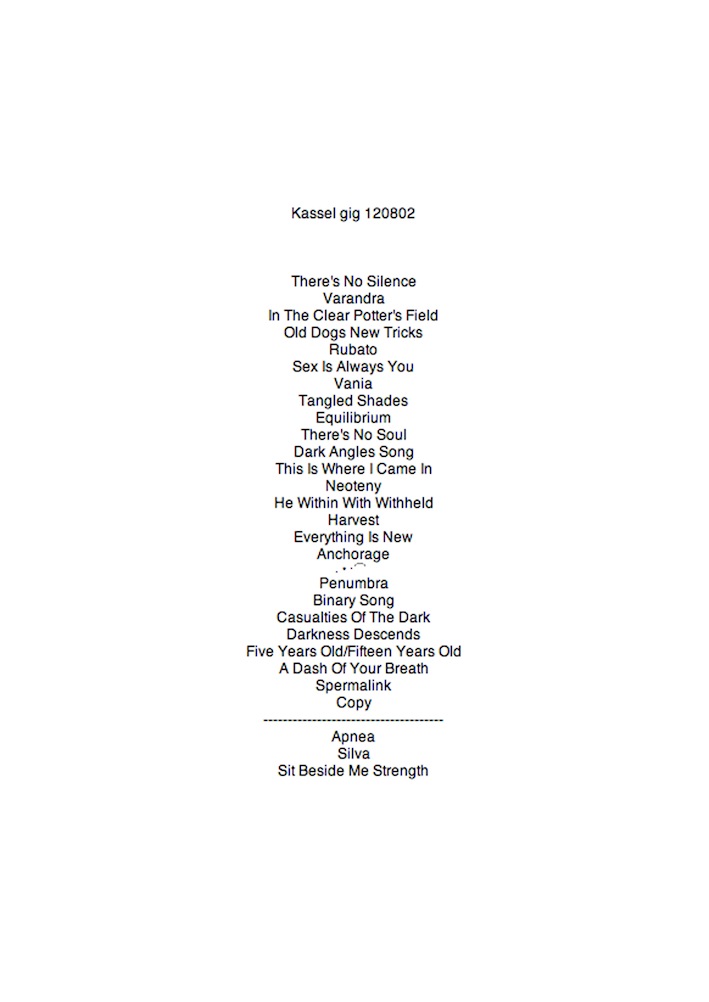 d - Jean-François Robardet - 2012, The nightingale, setlists printed on paper, 21 x 29, 7 cm each.