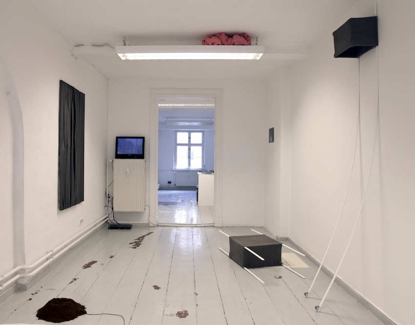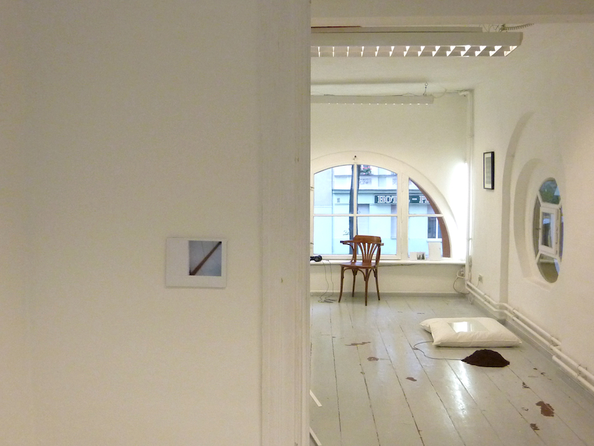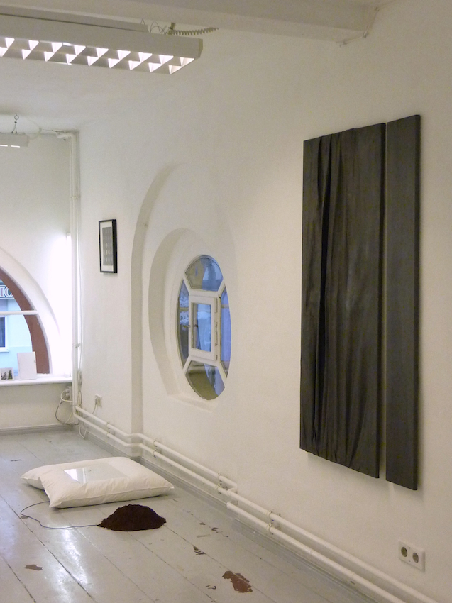 e - Daniel Löwenbrück - 2012, Lullaby, pillow, glass, blood, coffee, sound.
