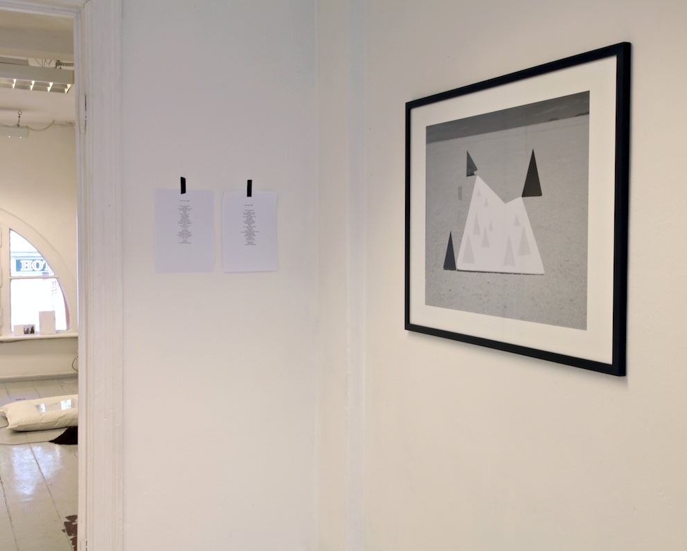 n (from left to right) - Jean-François Robardet, 2012, The nightingale, setlists printed on paper, tape, 21 x 29, 7 cm each // Mirja Busch, 2010, Cheer Up (Heel Stretch), SW-Print, 70 x 100 cm.