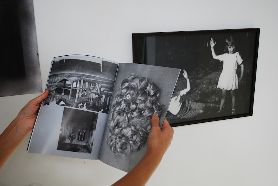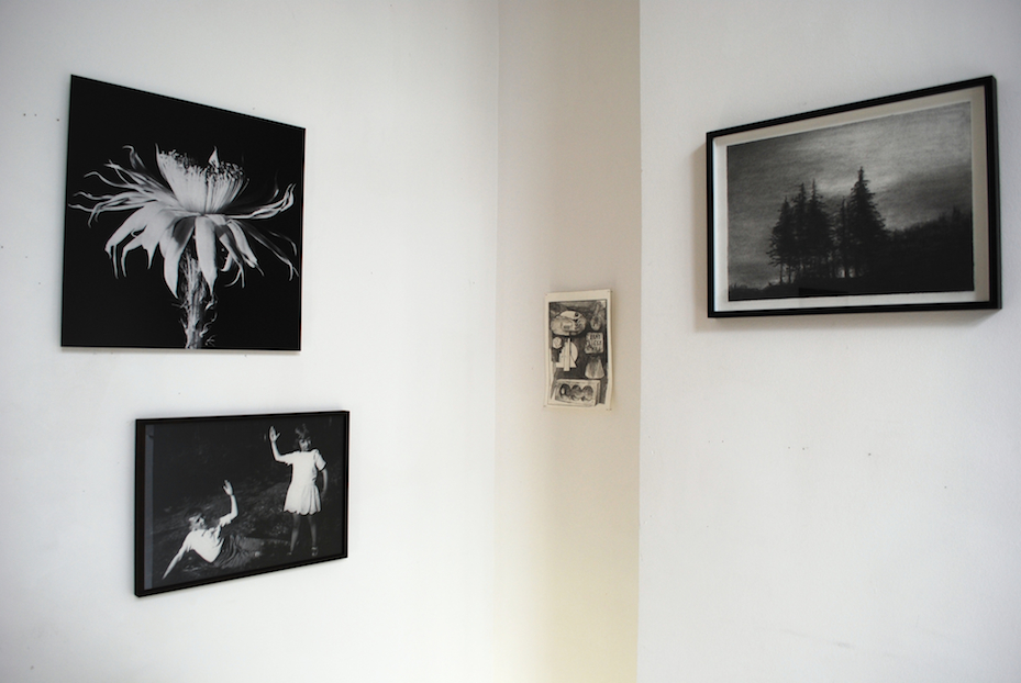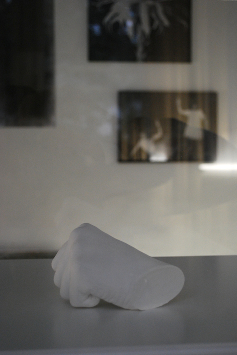 e - Sarah Tritz: Petit poilu, 2013, plaster strips and gouache on cardboard paper, 30 x 20 cm / Marthe Krüger: digital b/w photograph, variable size (drawing : graphite on paper, 50 x 70 cm)