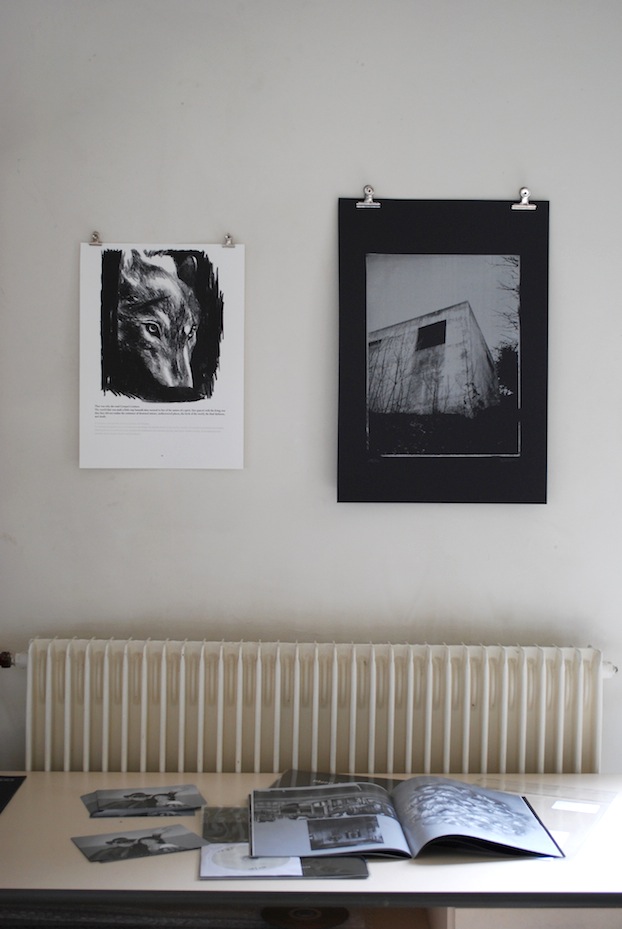 a - Myriam Mechita: The flesh and blood of life 2013, lithography, Les décombres, text by Virginia Woolf / Eric Bauer: Gouffre d'Enfer, december 2011, silkscreen print / Magazine (table)