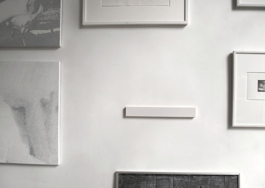 h - Elodie Seguin:"Ici" (étude longueur, surface > épaisseur), Bois, encres, 40 x 1,8 x 5,4 cm, 2013